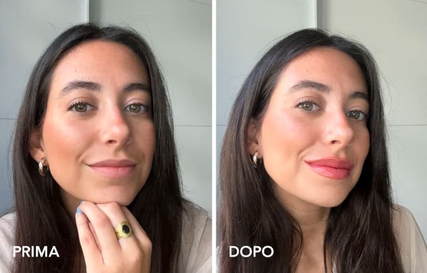 Effetto volumizzante immediato — le labbra appaiono sin da subito più piene e definite, senza bisogno di filler o interventi estetici.